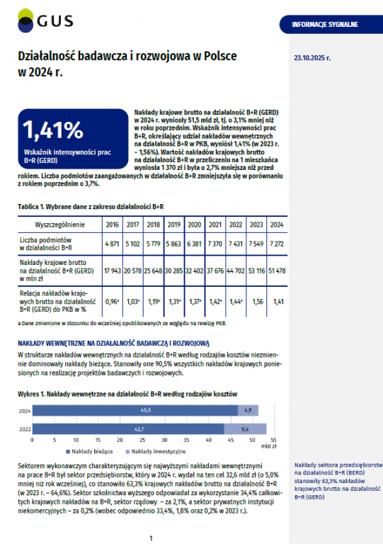 Działalność badawcza i rozwojowa w Polsce w 2024 r. - Informacja sygnalna