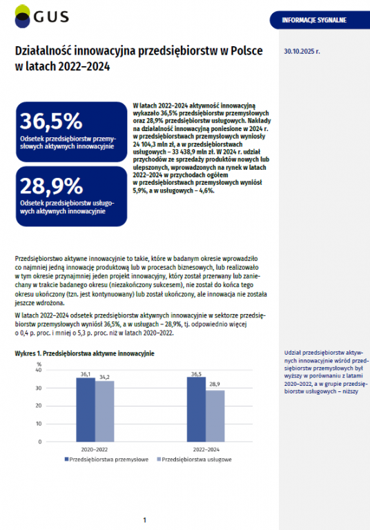 Działalność innowacyjna przedsiębiorstw w latach 2022-2024 - Informacja sygnalna